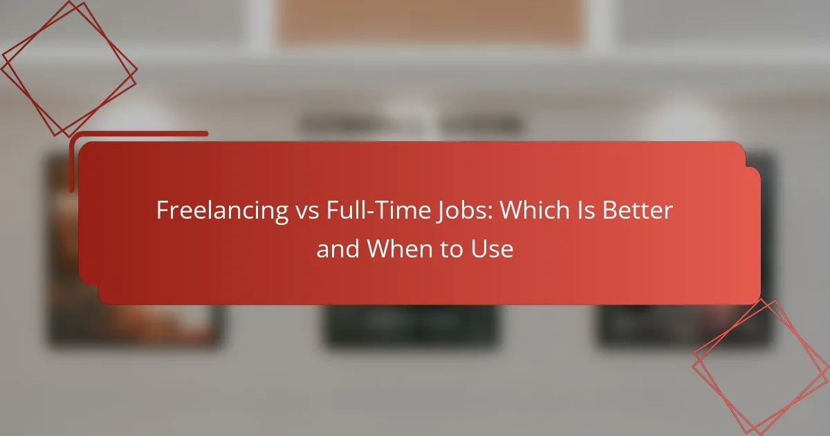 Choosing between freelancing and full-time employment involves weighing the benefits of flexibility and autonomy against the stability and benefits of traditional jobs. Freelancing can provide diverse project opportunities and the potential for higher earnings, while full-time positions often offer financial security and career advancement. Understanding your personal and professional goals is essential in determining which path is best for you.
